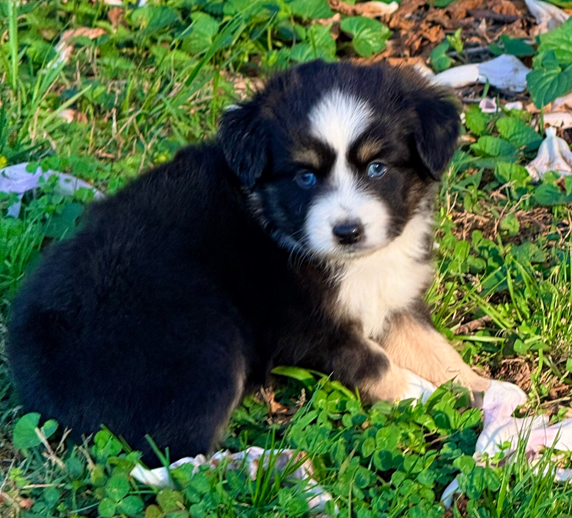 Bee x Mister welcomed a beautiful litter on 2/9/26. One black tri female, two black tri males and Blue Merle Female.